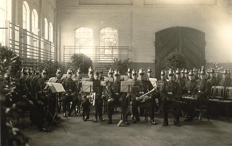 Musikzug bei einer Vereidigung von Polizeianwärter um 1930