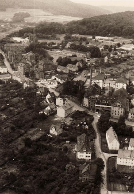 Blick auf die Wilhelmshäuser Straße (links die Kaserne, rechts Fa. Schröder)