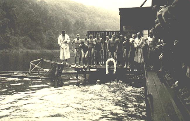 Schwimmunterricht in der Fulda (Schwimmanstalt)